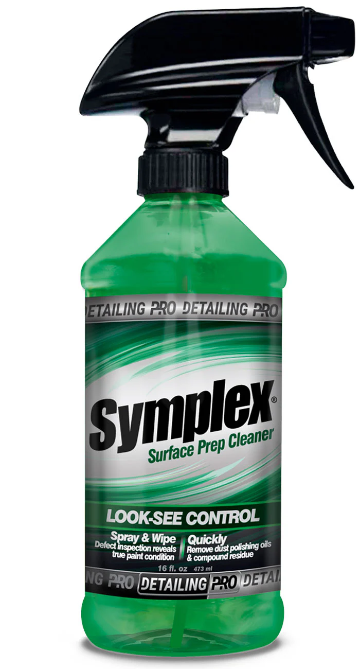 Control de acabado Look-See Symplex®, a base de alcohol, súper rendidor y listo para usar. Es un Limpiador de inspección en spray. Rápidamente elimina el polvo, los aceites de pulido y los residuos de compuestos para revelar el verdadero estado de la pintura, los defectos y marcas de lijado después de pulir la pintura. Con Look-See asegura la Máxima adherencia a la superficie del revestimiento cerámico y cualquier otro protector o cera de acabado final. Look-See fue formulado cuidadosamente para profesionales en Detallado para equiparlos con un spray de inspección.