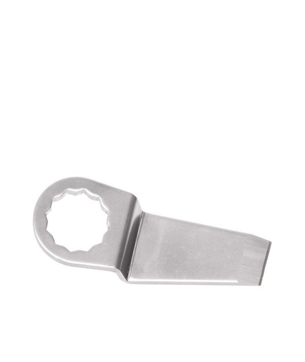 Esto funciona como un aviso: si la presión durante el uso es demasiada la cuchilla empezará a flexionarse. Todas las láminas son planas en un lado para que corten el adhesivo justo al vidrio, en la zona de menos resistencia. Las cuchillas se pueden utilizar en la mayoría de herramientas oscilatorias del mercado.