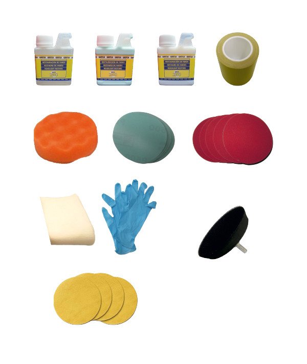 Sistema innovador y muy práctico para la restauración de faros de plástico quemados y decolorados por la acción de los rayos UV. Mediante este kit podrá devolver al estado original los faros del vehículo, recuperando una mayor visibilidad y evitar cualquier problema en la ITV.